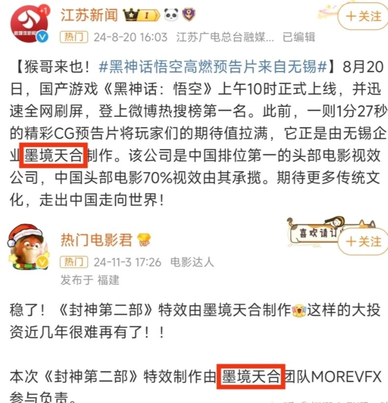 是的,没看错,齐是这一家墨镜天合团队制作的。其实这家公司还作念了《流浪地球2》的殊效;