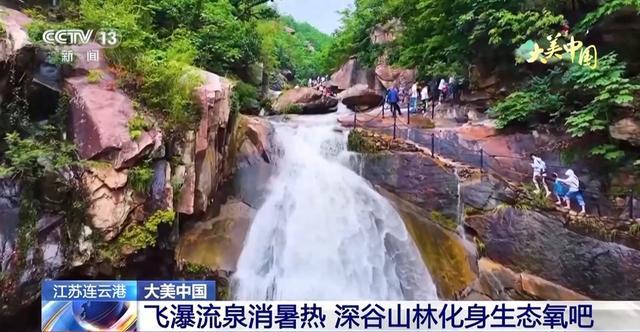脚下,在江苏连云港渔湾,满眼青翠与潺潺活水的山涧成了生态氧吧,繁密市民在山水间消解暑热、舒坦乘凉。