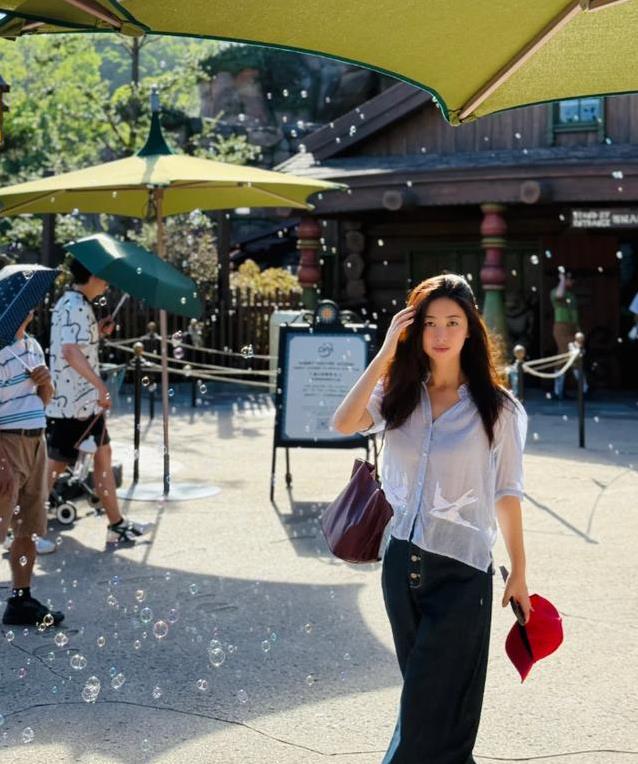 提及朱珠,她身上有种天生的“老钱感”。岂论在哪儿,她总能自如莽撞,气场庞杂又不张扬。这种底气,臆想跟家庭环境脱不开掂量。她站在迪士尼的街头,拍张照齐像先锋杂志封面。