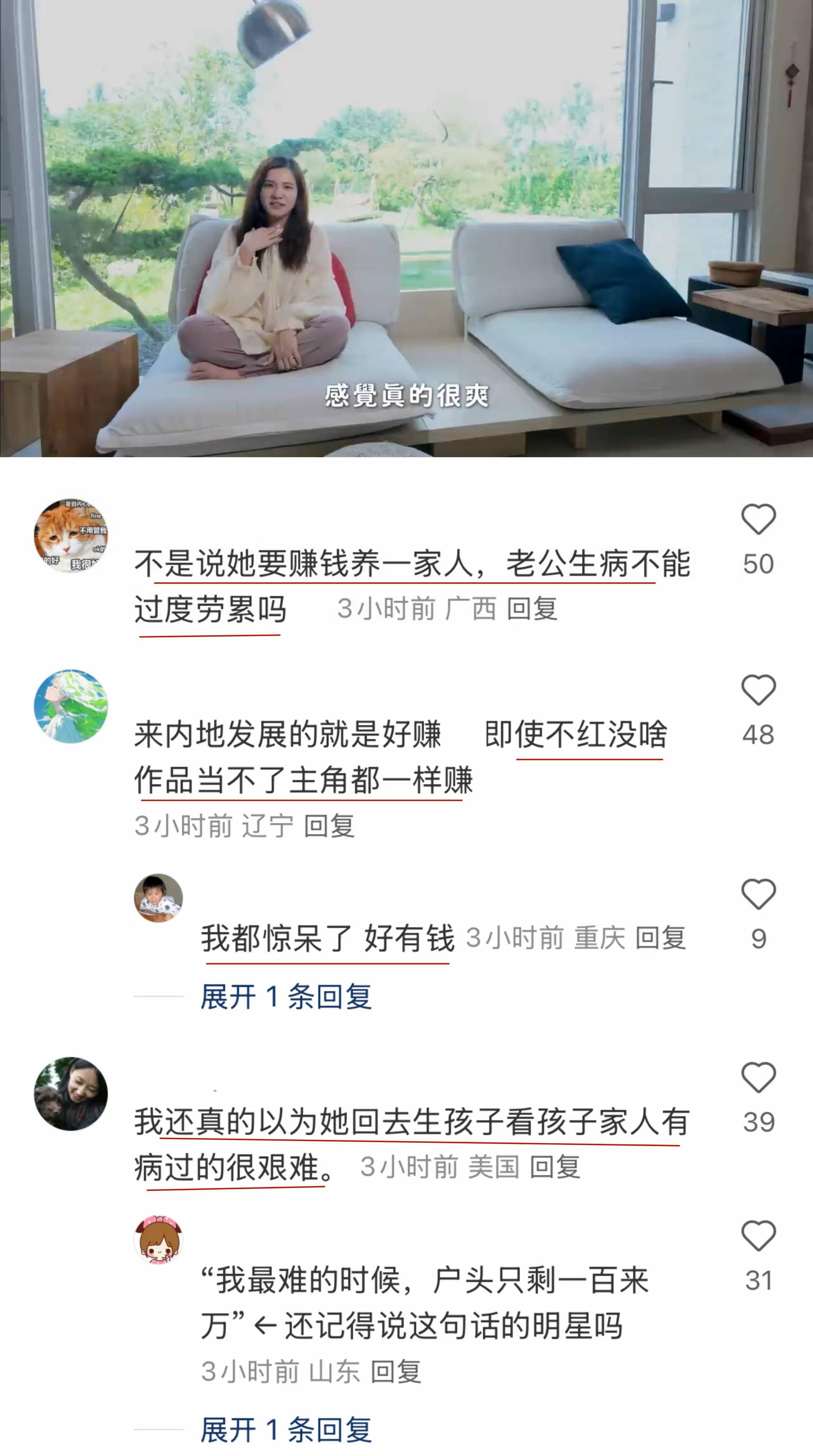 之前节目中说老公患了重症肌无力,是以当今家里基本是靠谢依霖我方收货。不外从她的豪宅来看,谢依霖赚的钱还真不少,日子也并不是那么酸心。
