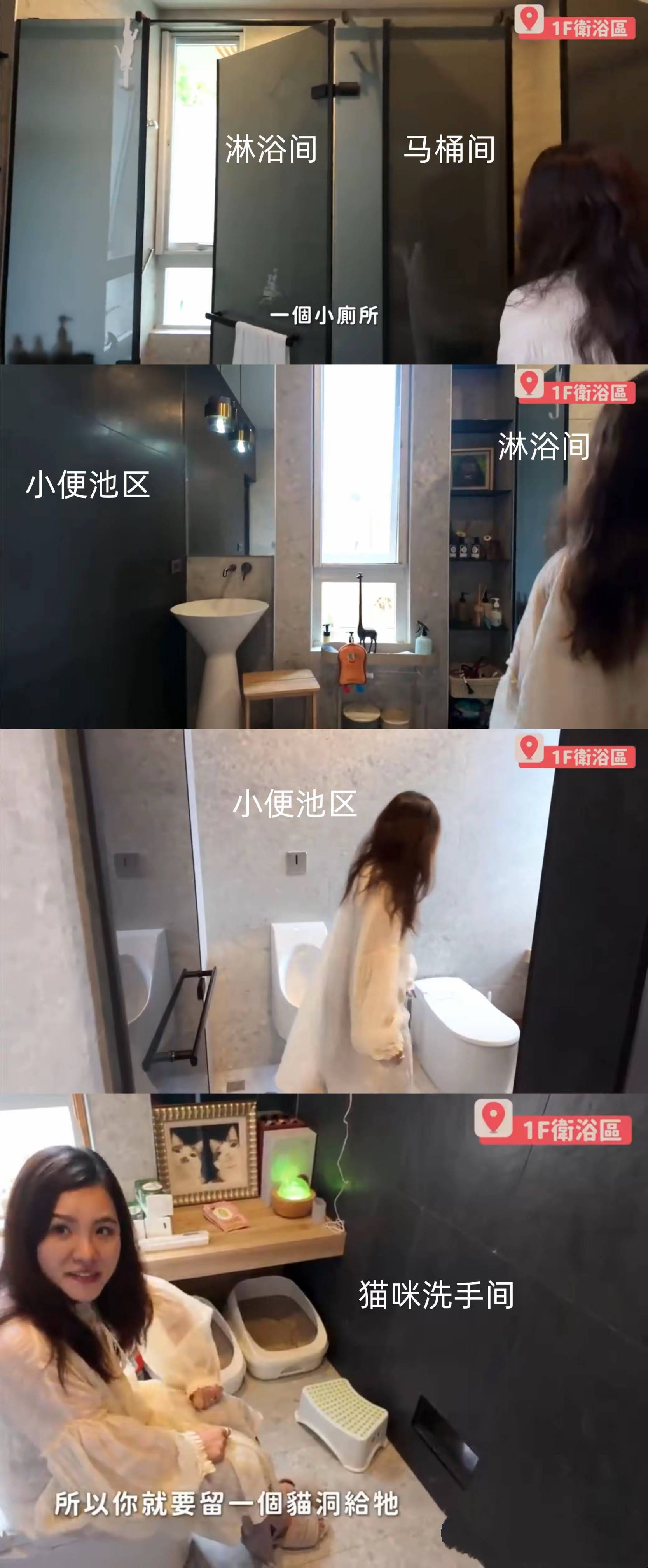 谢依霖指导大家参不雅他们家的卫生间,淋浴间、马桶、小便池去,分类很细巧,这险些不像是等闲家庭,就像是豪华旅舍里的卫生间。