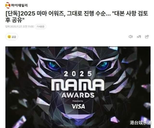 27日,韩媒报说念称,《2025 MAMA AWARDS》将按期举行。