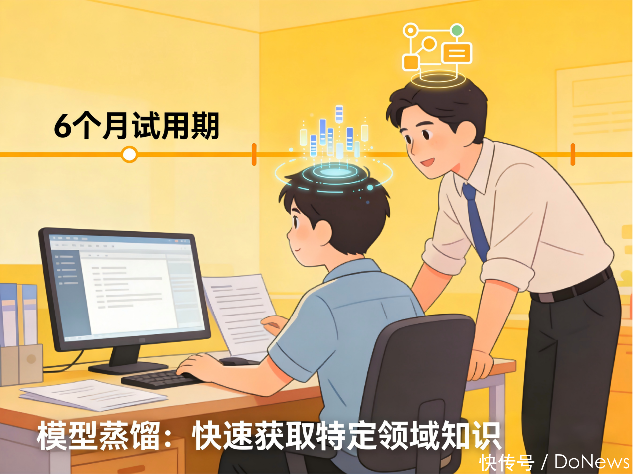 刚上岗的时候,雇主给你指定一位敦朴,他在试用期6个月的时分里用最快的面孔把他脑子里的精华告诉你,要怎么作念事,这即是蒸馏——在特定的小范围找到正确谜底最快的面孔。