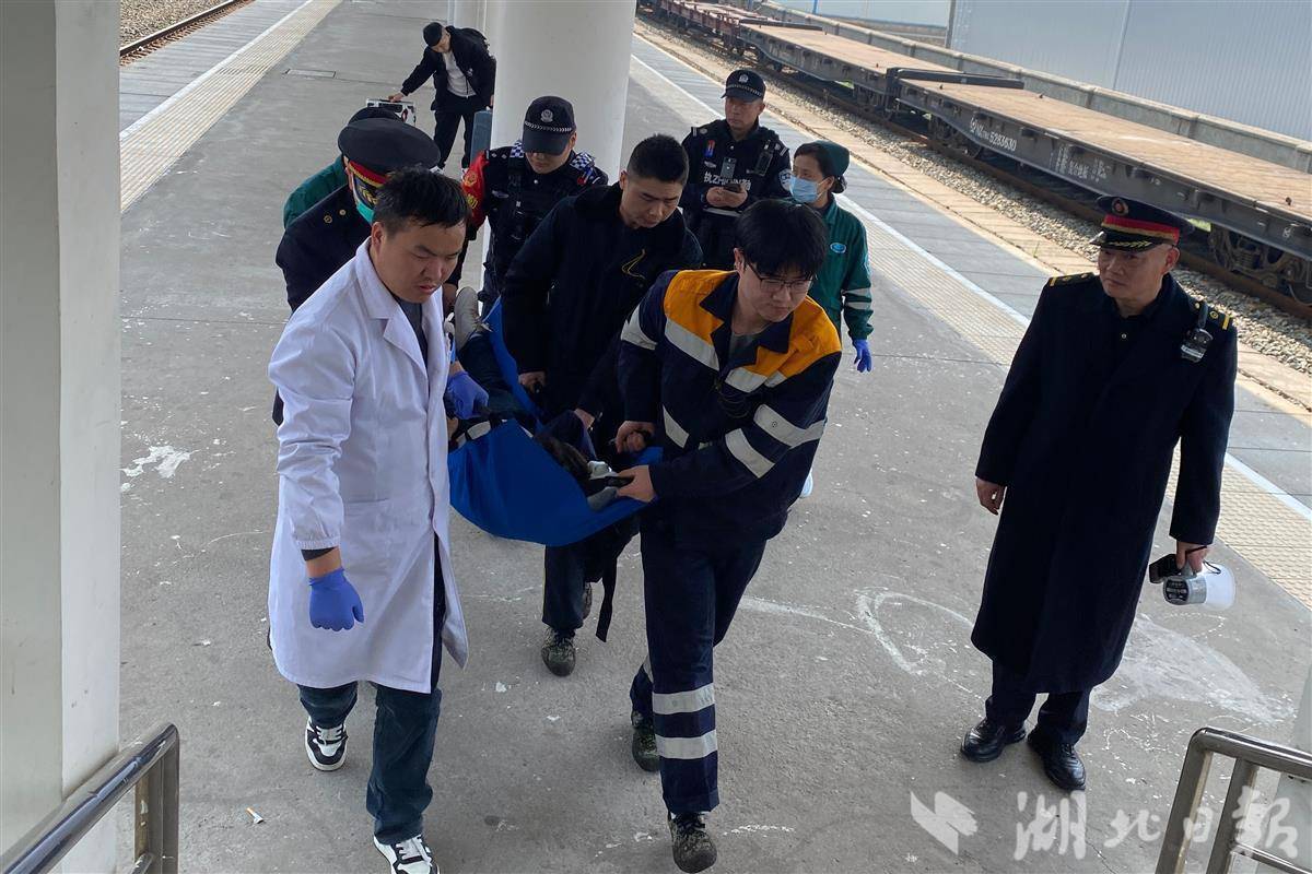 2月17日,K643次列车靠岸在云梦火车站,使命主说念主员拨打120急救电话后,用棉被将妊妇蹙迫送医,子母吉祥。(湖北日报通信员 丁旭 摄)