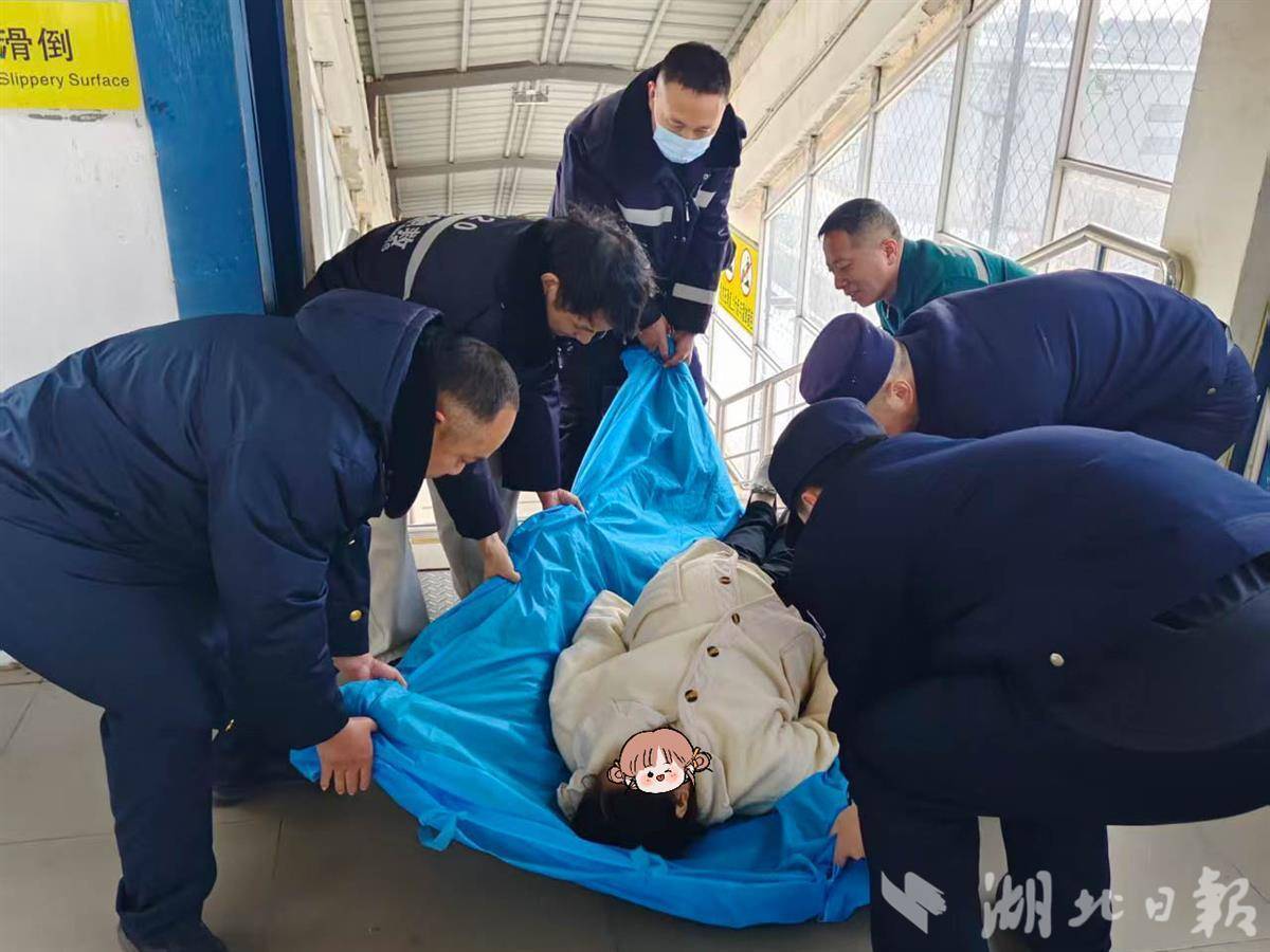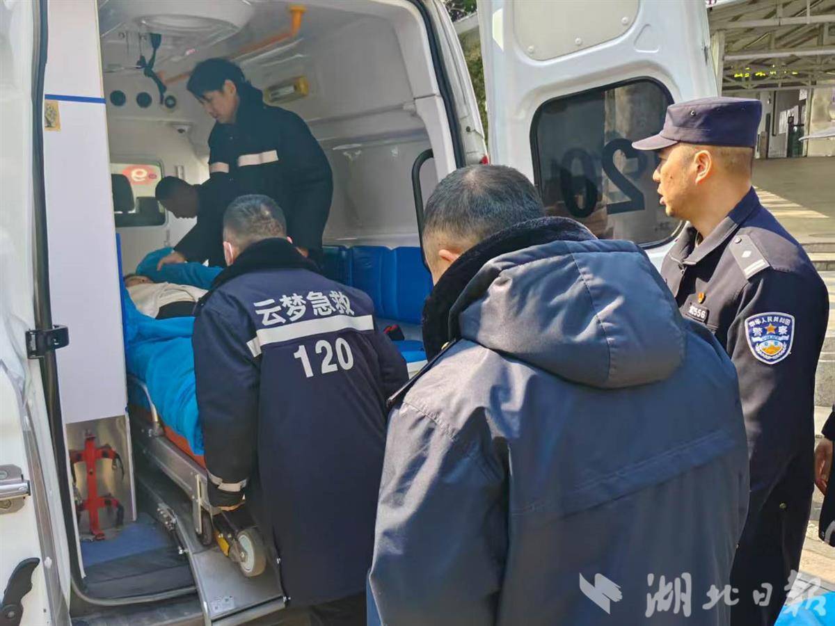 12时35分,救护车抵达云梦站。由于妊妇情况出奇无法浮松迁徙,车站使命主说念主员依据此前集会的救急申饬,与急救东说念主员致密合营,接收“世东说念主托举”的方式,将其清静滚动至救护车,家属随车跟随赶赴云梦县中病院。