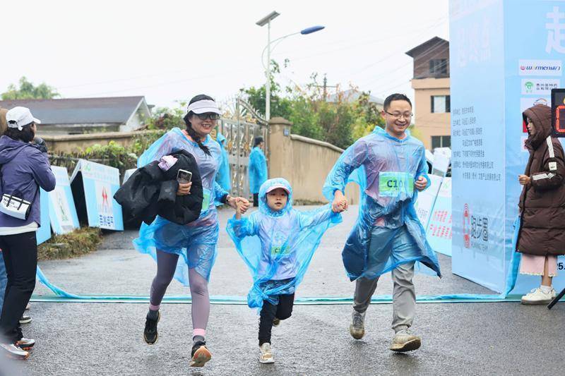 来自黔南州贵定县进入亲子跑活动的8岁小一又友林嘉琪说:“诚然今天一直下雨,跑山路很坚苦,但我很抖擞,能和爸爸一起完成挑战。”