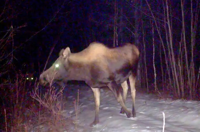 会发光?还牢记开端拍摄到的那张驼鹿的相片里,驼鹿的眼睛会“发光”吗?