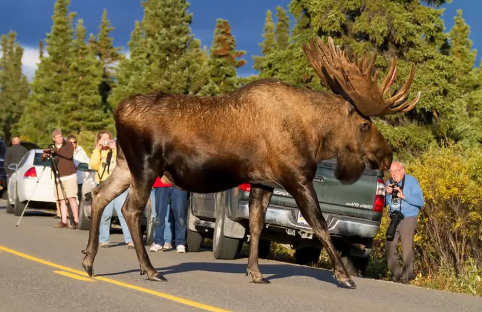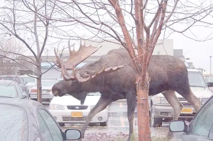 阿拉斯加驼鹿亚种成年雄性的体重平均能突出540公斤,已知最大个体体重达771公斤,传闻还有接近1吨的存在,而肩高雄伟突出2米,2.4米的个体曾经被不雅察到过,许多拍摄该物种途经汽车的图皆能显着看出其体型之骇然。