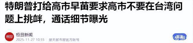 《特朗普打给高市早苗条目高市不要在台湾问题上寻衅,通话细节曝光》——极目新闻
